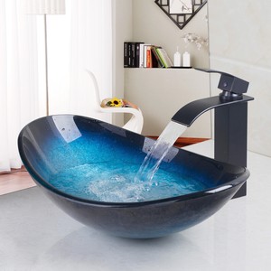 Art Basin Mediterranean Blue Bathroom Artistic Glass Vessel Sink