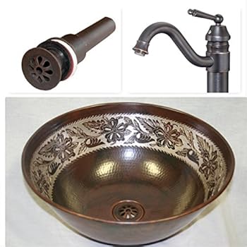 14 Round Copper Vessel Bathroom Sink With Silver Overly With 13