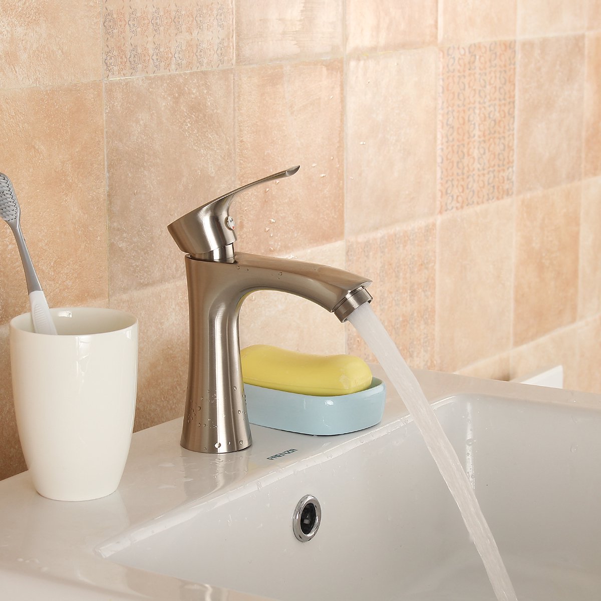 Brushed Nickel Bathroom Sink Faucet Tap Single Hole Handle