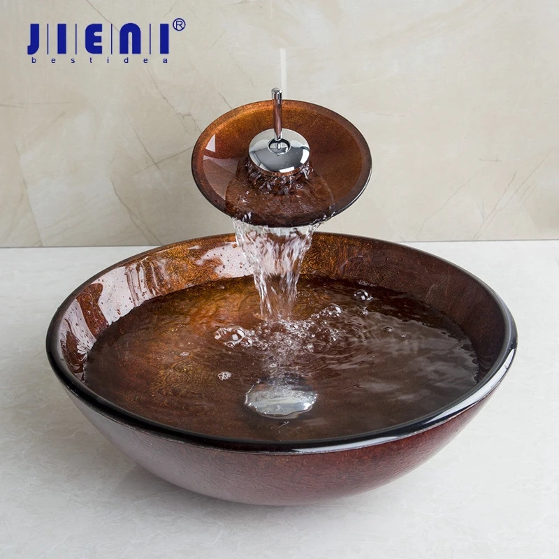Jieni Hot Melt Design Round Tempered Glass Vessel Sink With