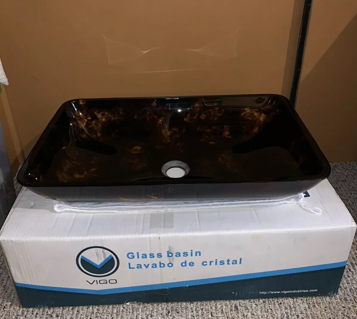 Nib Vigo Rectangular Brown And Gold Fusion Glass Vessel Bathroom