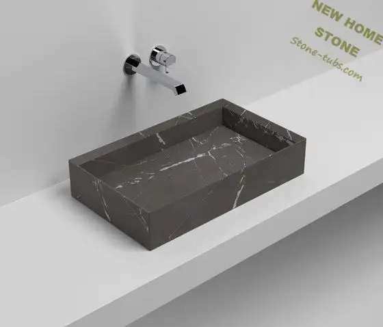 Rectangular Bathroom Sink Simple Style French Design Black Marble