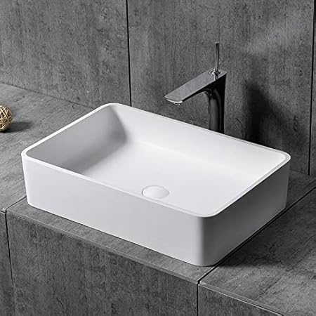 Weibath Modern Rectangular Stone Resin Bathroom Vessel Sink With