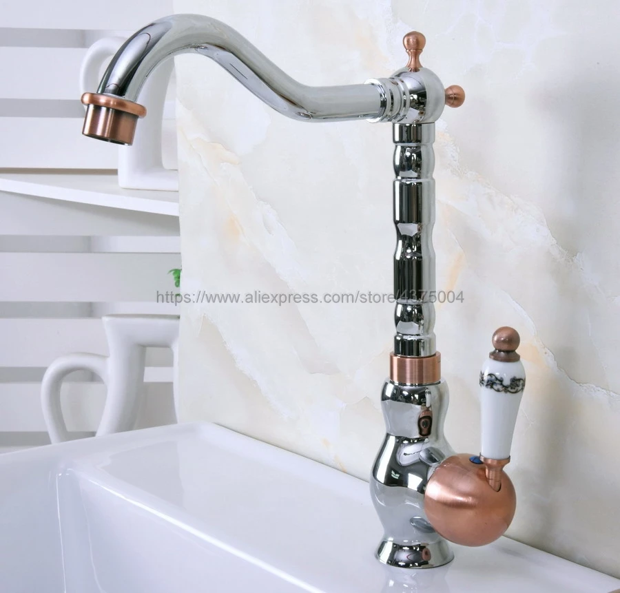 Bathroom Sink Faucet Polished Chrome And Red Copper 360 Rotable