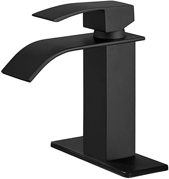 Hoimpro Black Waterfall Spout Bathroom Faucet Single Handle