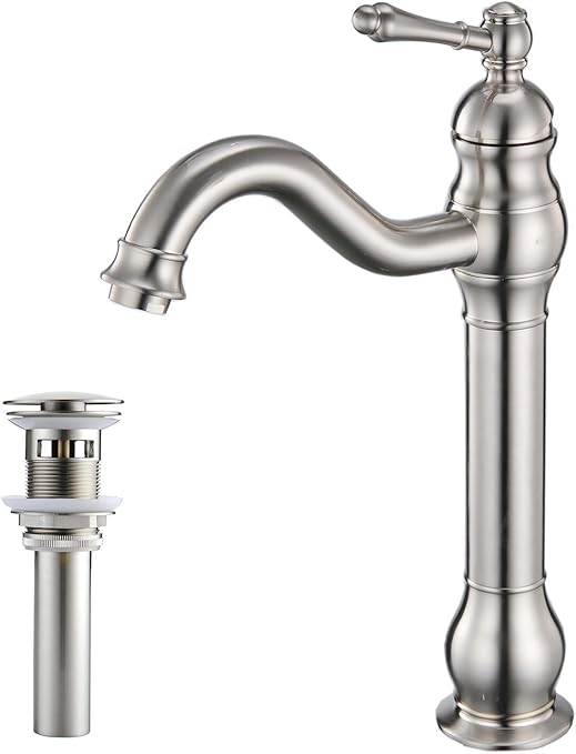 Bathlavish Single Handle Tall Brushed Nickel Bathroom Vessel Sink
