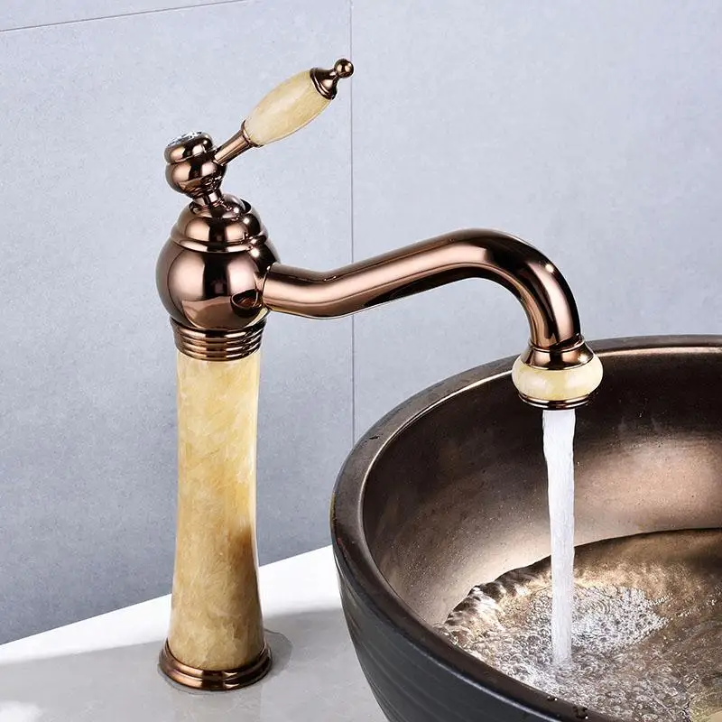 Basin Faucet Rose Gold Jade Bathroom Sink Faucet Hot And Cold
