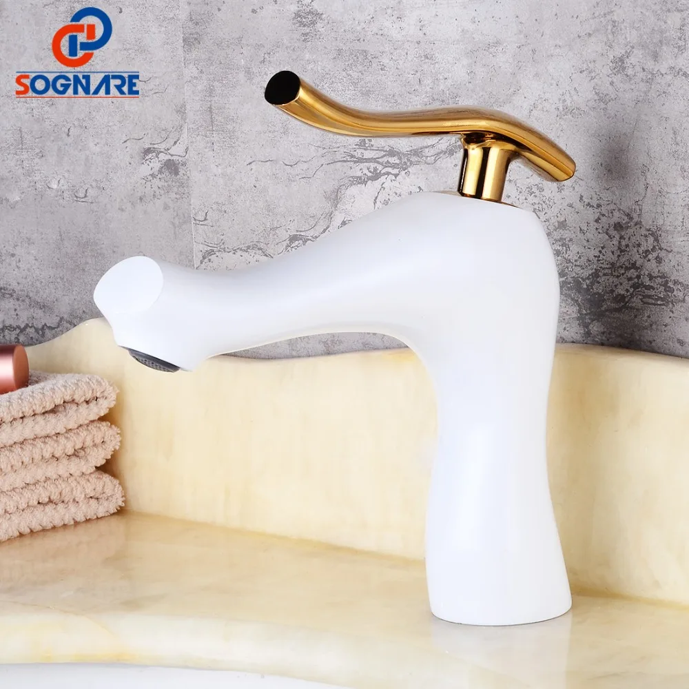 Sognare Wash Basin Faucet Gold Brass Taps Single Handle Bathroom