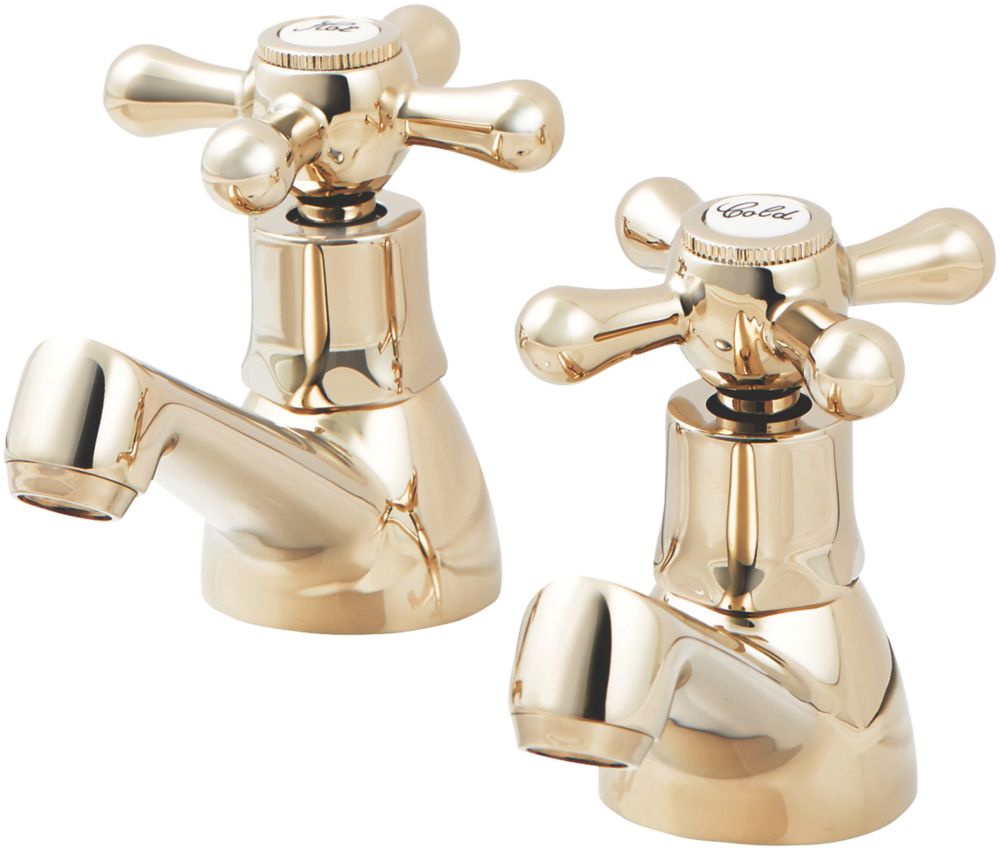 Cooke Lewis Hot Cold Traditional Gold Bathroom Sink Basin Pillar