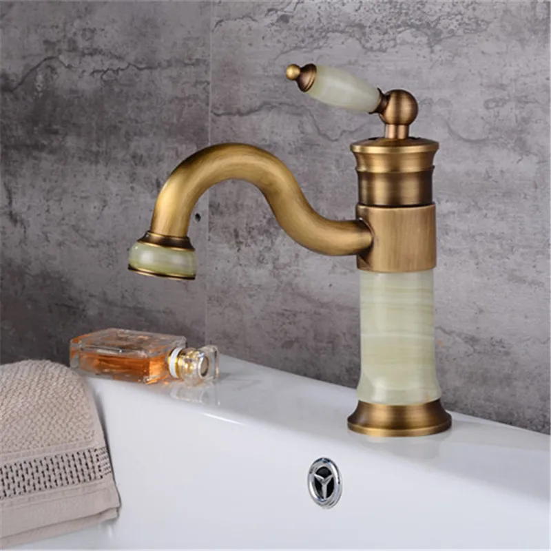 Basin Faucets Brass Antique Jade Decorate Bathroom Large Bend