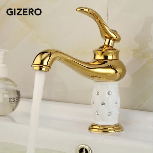 Modern Luxury Bathroom Crystal Basin Mixer Ceramic Diamonds Golden