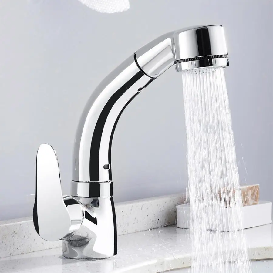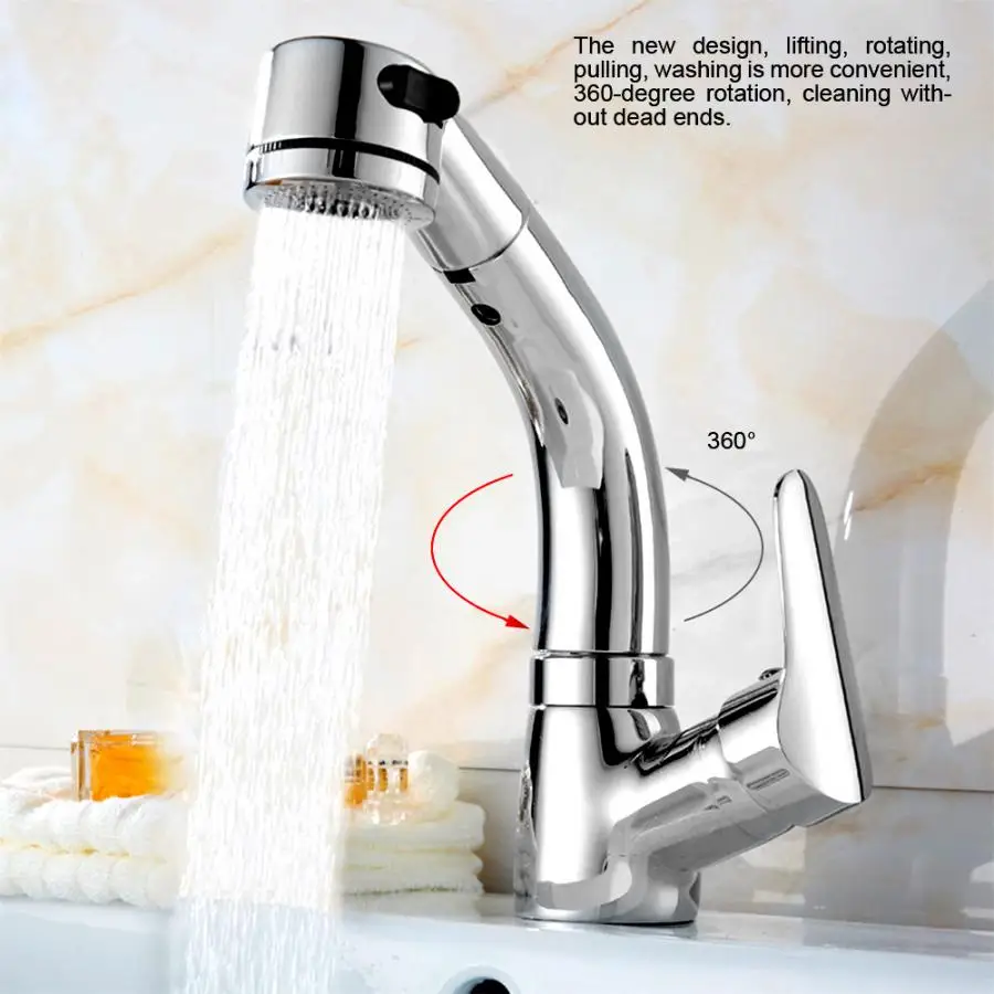 Copper Bathroom Sink Faucet Lift And Pull One Handle Kitchen Water