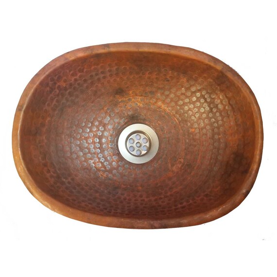 Hammered Copper Self Rimming Oval Bathroom Sink Rustic Bathroom