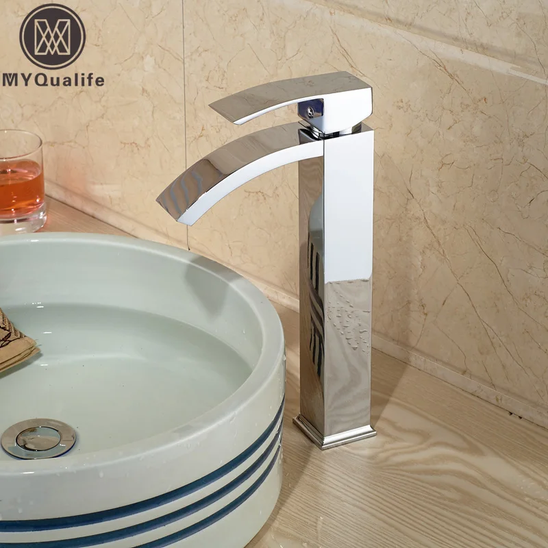 Chrome Basin Vessel Sinks Mixer Faucet Single Handle Countertop