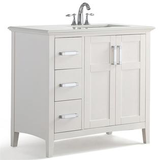 Simpli Home Chelsea 36 Right Offset Quartz Marble Top Bathroom Vanity