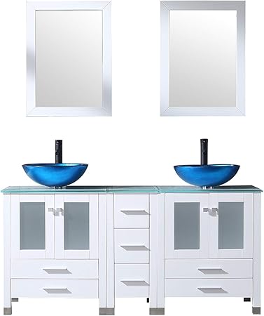 Sliverylake White 60inch Bathroom Vanity Top Double Vessel Sink