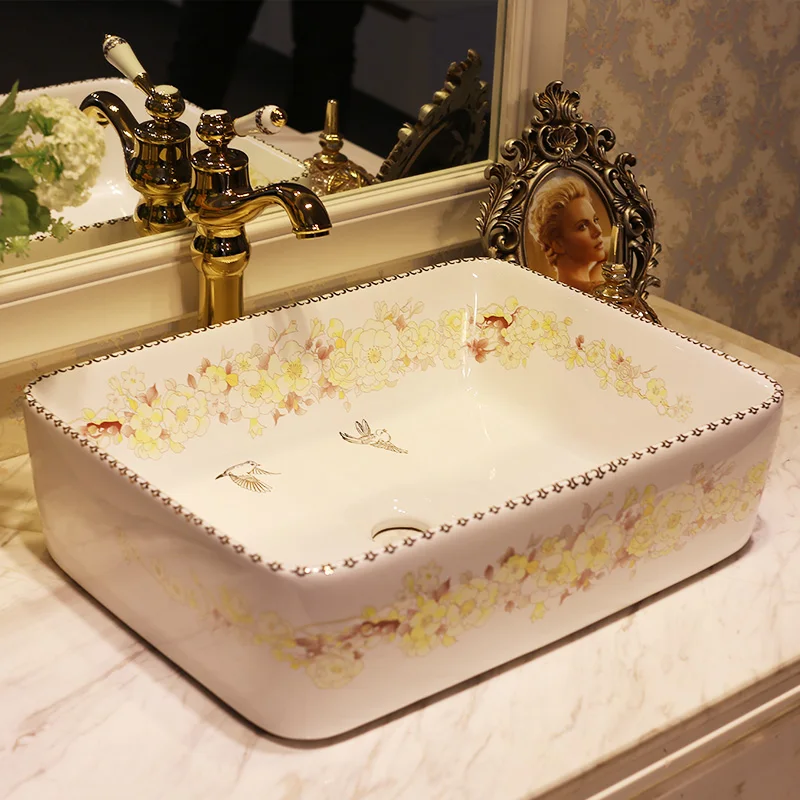 Rectangular Europe Style China Washbasin Sink Jingdezhen Art