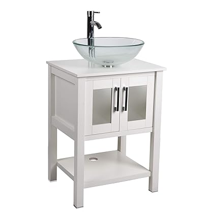 White Bathroom Vanity And Tempered Glass Sink Faucet Combo 1 5