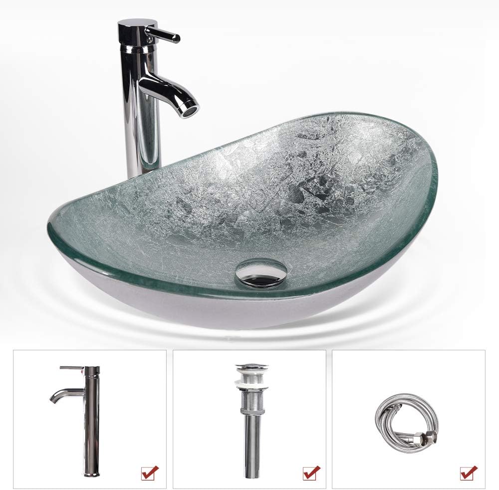 Sliverylake Artistic Tempered Glass Vessel Sink And Faucet Combo