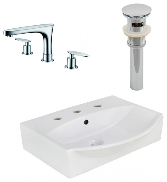 Wall Mount Vessel Sink Set In White Contemporary Bathroom