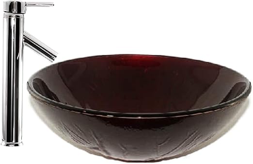 Volcanic Eruption Glass Sink With Tall Faucet Glass Vessel Sink