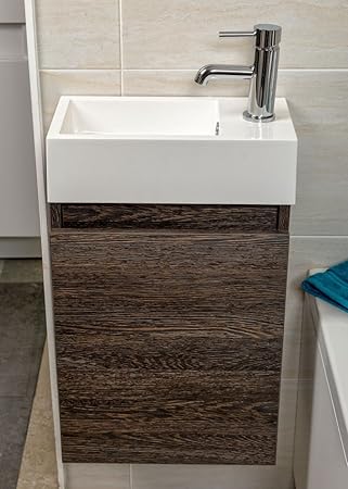 Milan Dark Wood Bathroom Wall Hung Compact Vanity Sink Unit Resin