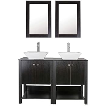 48 Bathroom Vanity Double Sink Black Mdf Wood Cabinet W Mirror