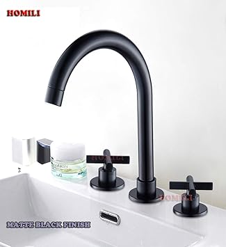 Deck Basin Double Handle Faucet Matte Black Bathroom Sink Hot And