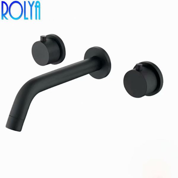 Matte Black Bathroom Basin Faucet 3 Hole Wall Mount 2 Cross
