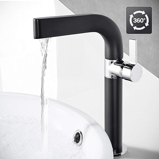 Yohom Black Tall Modern Solid Brass Mono Basin Taps 360 Degree