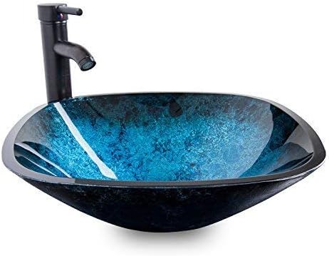 Eclife 16 5 Ocean Blue Square Bathroom Sink Artistic Tempered