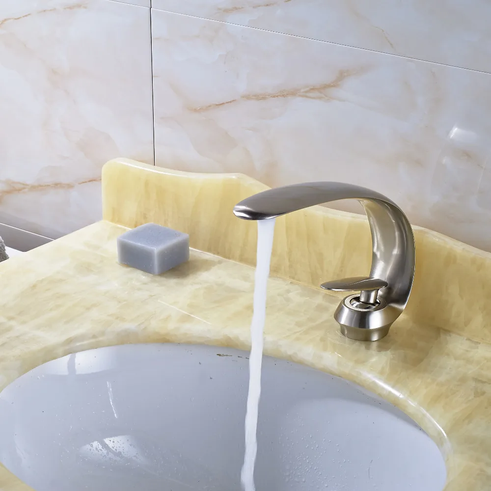 Modern Single Hole 1 Handle C Shaped Curved Spout Bathroom Sink