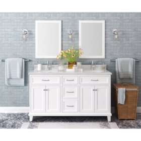 Kenston 60 White Double Sink Vanity With Backsplash Sam S Club