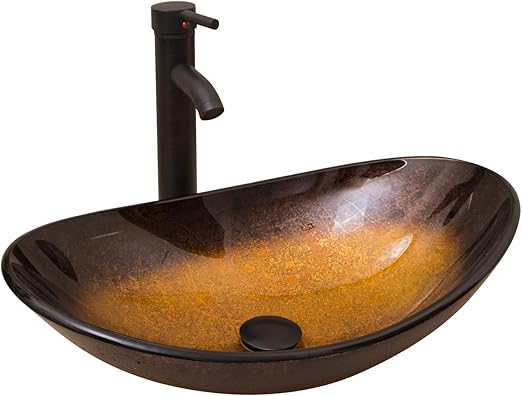 Sliverylake Artistic Boat Oval Sink Bowl Bathroom Glass Vessel