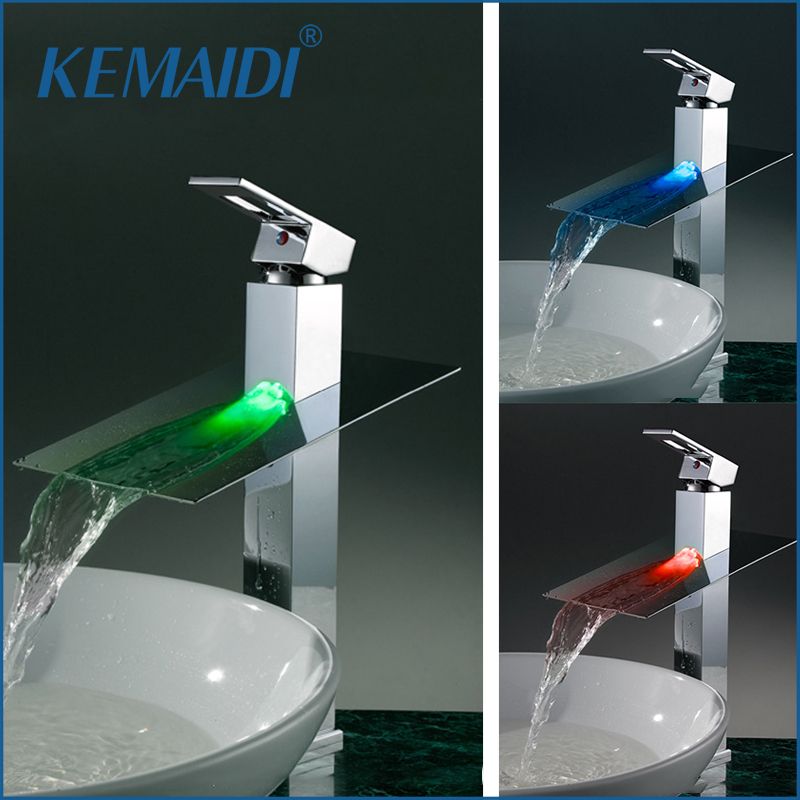 2019 Kemaidi Led Chrome Tall Basin Faucet Water Tap Bathroom Sink