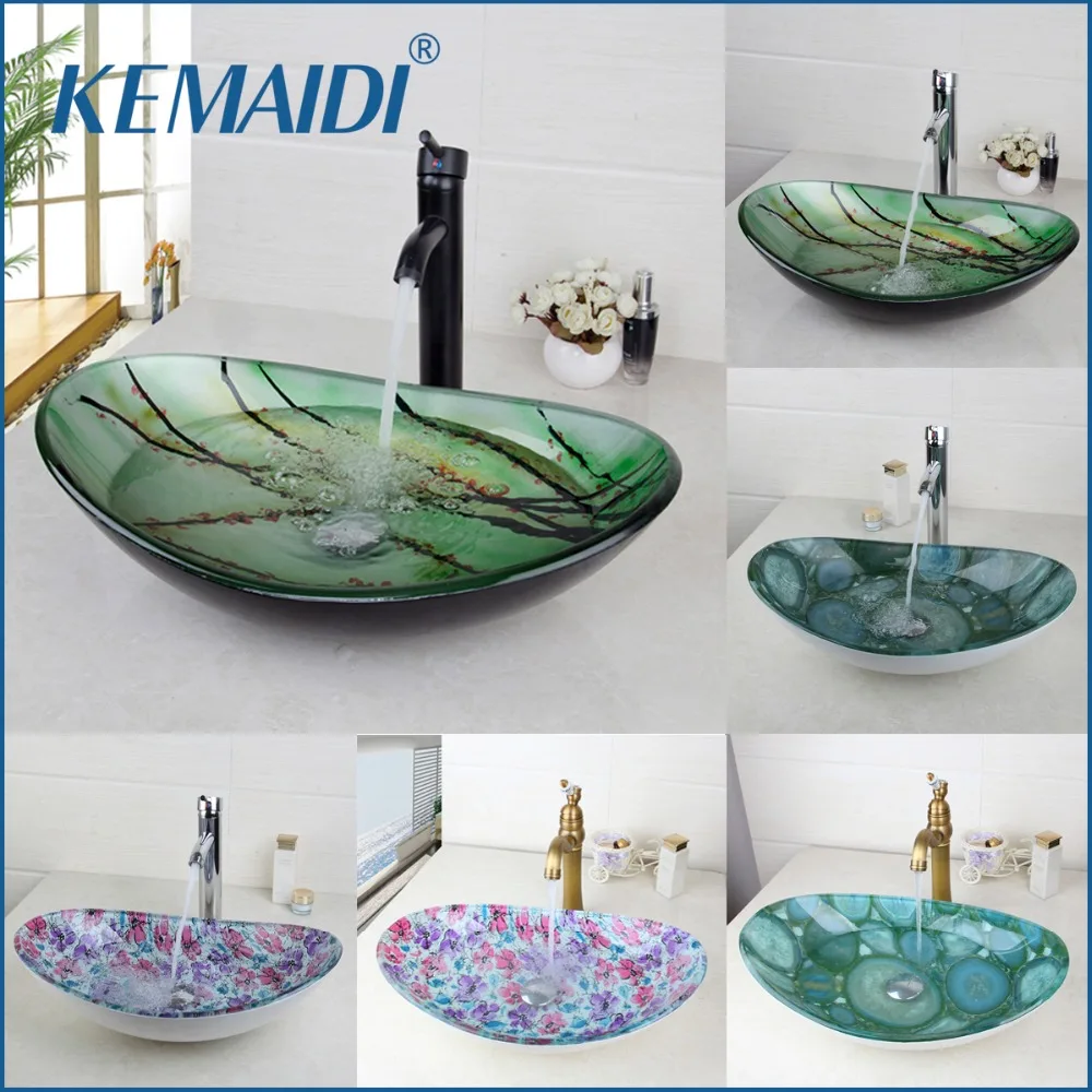 Kemaidi Tempered Glass Hand Painted Bathroom Basin Tap Waterfall