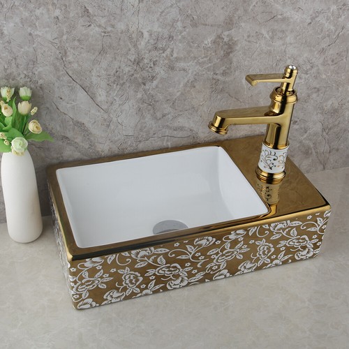 Bathroom Rectangular Ceramic Hand Paint Basin Bowl With Mixer Taps