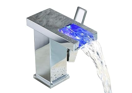 Bathroom Sink Faucets Waterfall Led Color Change Ceramic Valve
