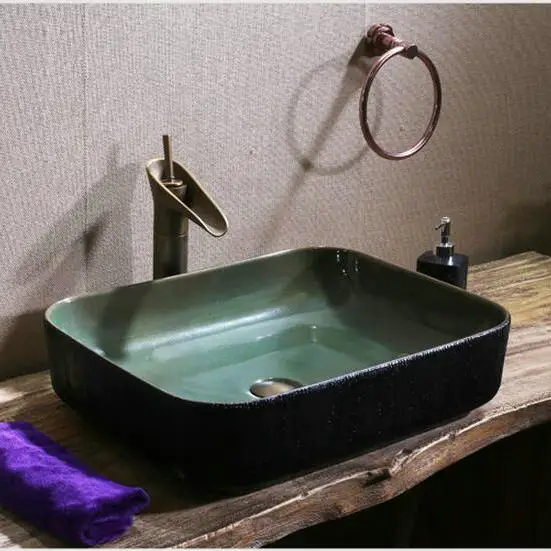 Industrial Style Crackle Porcelain Lavabo Rectangular Countertop
