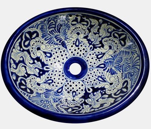 Full Alcatraz Mexican Bathroom Ceramic Oval Talavera Sink
