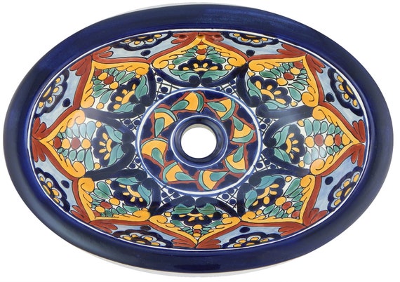 Vallarta Mexican Bathroom Ceramic Oval Talavera Sink Tilesandtiles