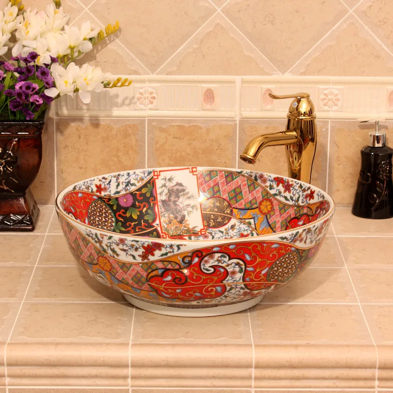 China Painting Ceramic Painting Art Lavabo Bathroom Vessel Sinks