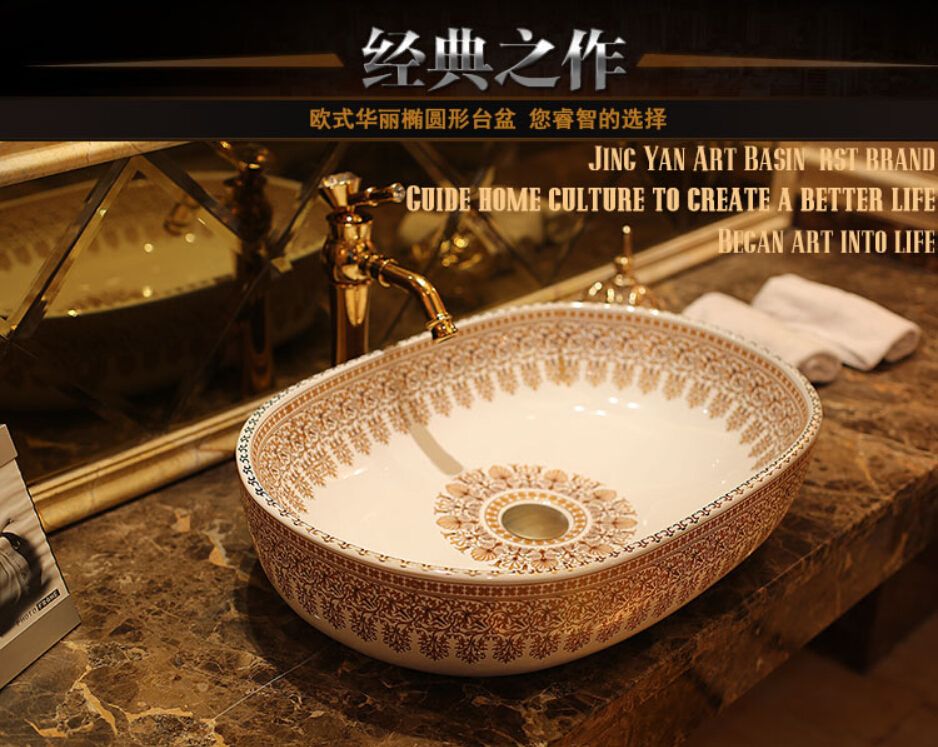 Gold And Black Faucet Hand Painting Ceramic Wash Basin Sink Basin
