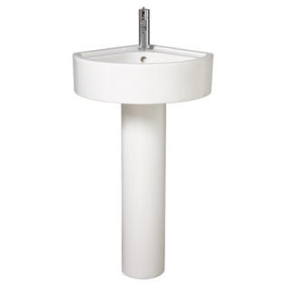 Porcher Solutions Small Corner Bathroom Sink With Round Pedestal