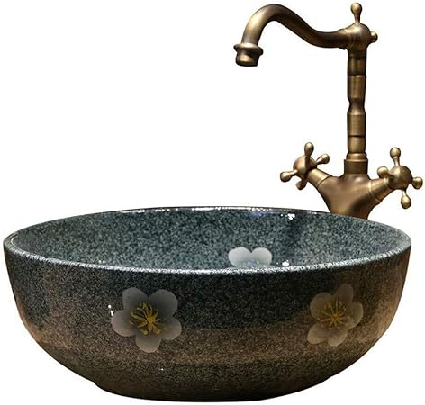 Bathroom Sinks Bathroom Round Washbasin Retro Creative Jingdezhen
