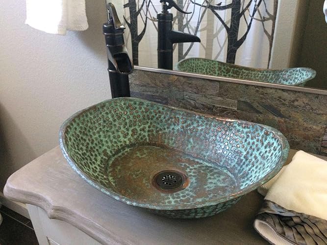 Copper Rustic Dark Verde Oval Bathroom Hammered Sink