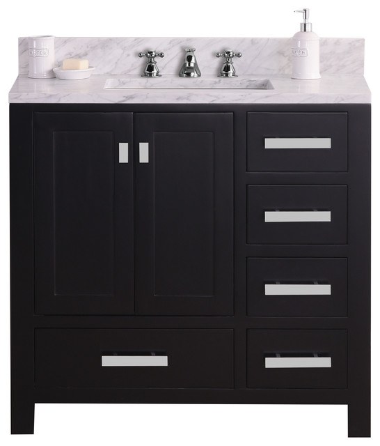 Transitional Bathroom Vanity Set W Carrera Marble Top Espresso 36