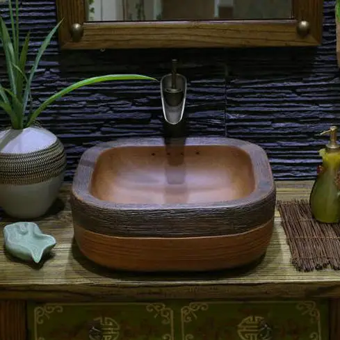 Handmade Primitive Style Stone Like Porcelain Countertop Lavabo