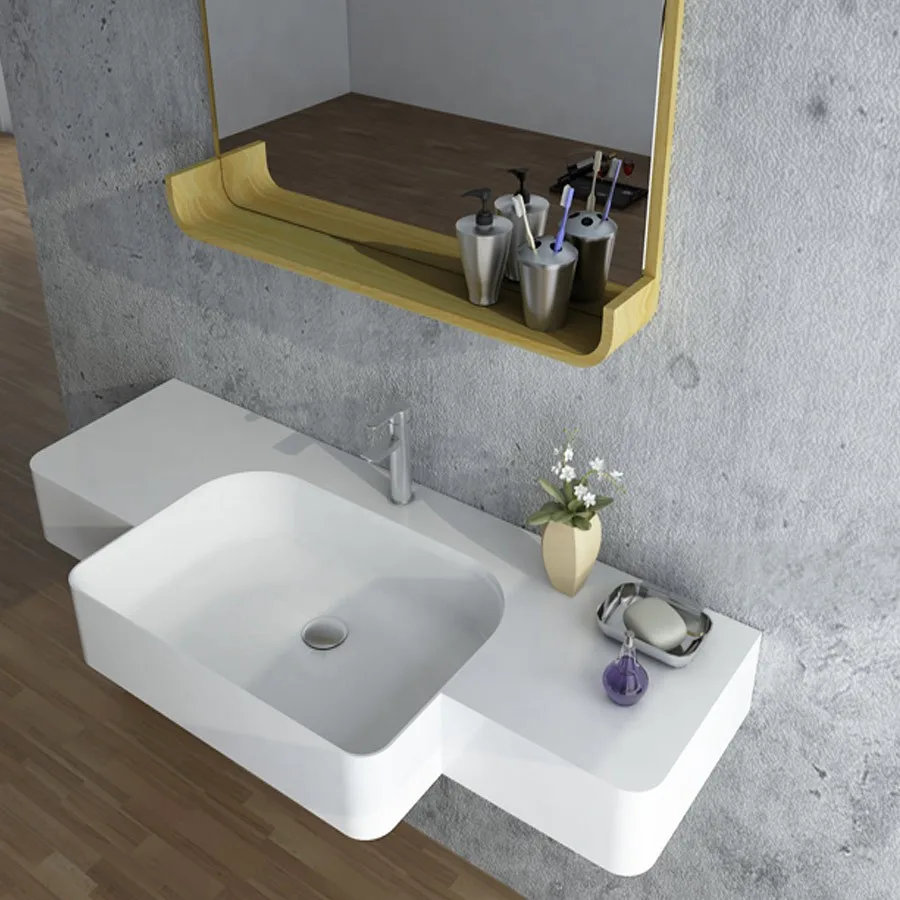 Bathroom Rectangular Solid Surface Stone Wall Hung Wash Basin Wall